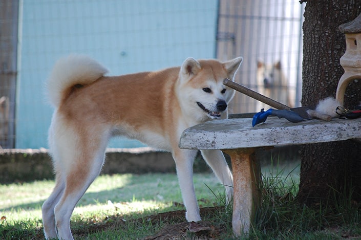 Durante estudos para a renovação do plantel, pretendia adquirir uma fêmea fruto de cruzamento em Linebreeding para trazer qualidades prontas e bem trabalhadas, para me propiciar experimentos dentro da mesma linha de sangue, pois sigo firmemente o trabalho feito pelo honorável senhor Koji Shirai do Shirai Kennel do Japão, através da criação de meu amigo pessoal Maurício Pioli em seu canil e das importações. A grata surpresa foi a bela Wagashi, filha de Shougestu e Kanon, uma linda fêmea de um cruzamento espetacular, com certeza belos frutos virão com o tempo.